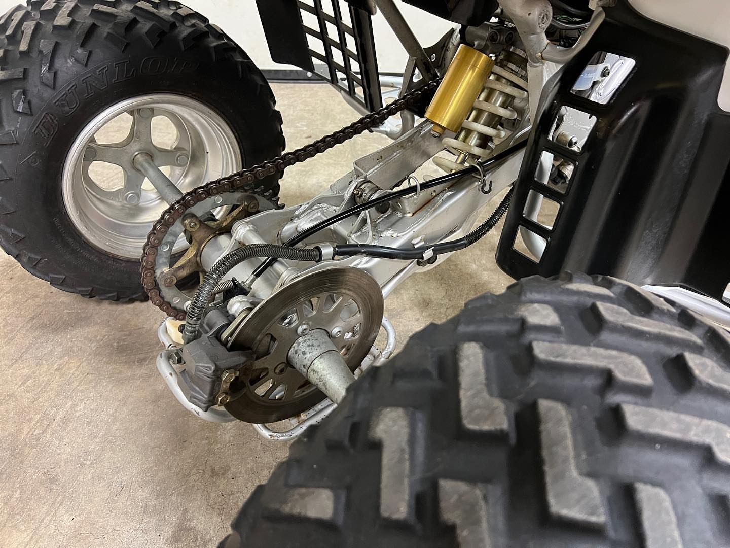 Braking performance on the 1998 Yamaha Banshee 350 is provided by hydraulic disc brakes on all four wheels, a premium feature at the time of its release.