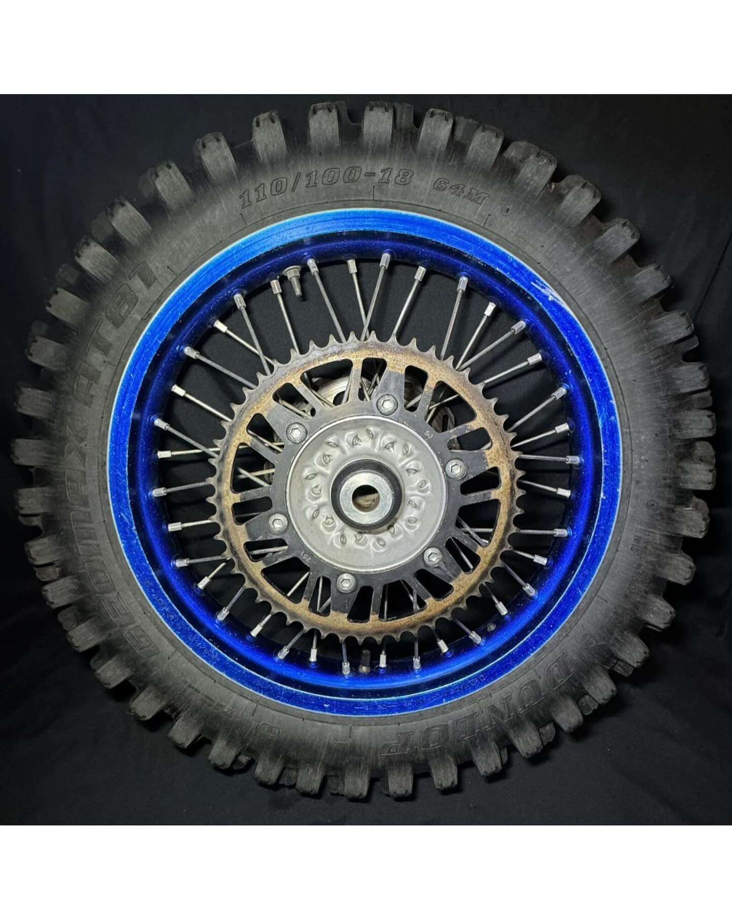 This unit includes the 18” rear wheel rim and hub optimized for motocross performance. The rim is designed to handle impacts from jumps, whoops, and rough terrain, while the hub provides a stable mount point for bearings and sprocket components.